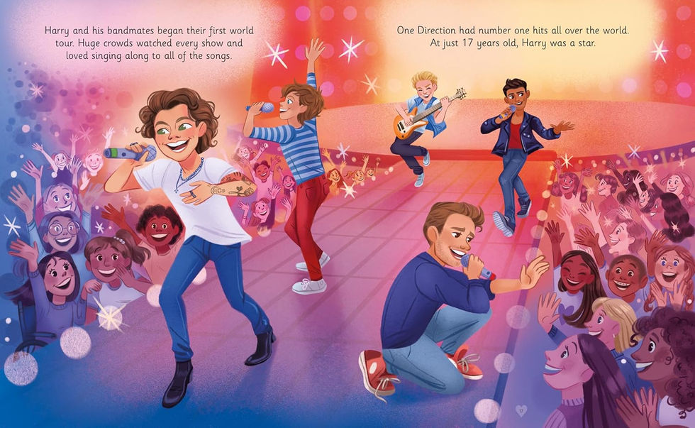 With this bright and colourful story book, you can follow Harry's journey from television talent show contestant to pop superstar! Are you Harry's biggest fan? See if you can spot the Easter eggs hiding on every page! There's so much to discover.